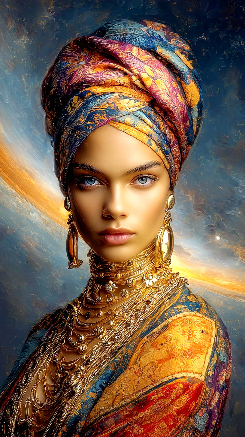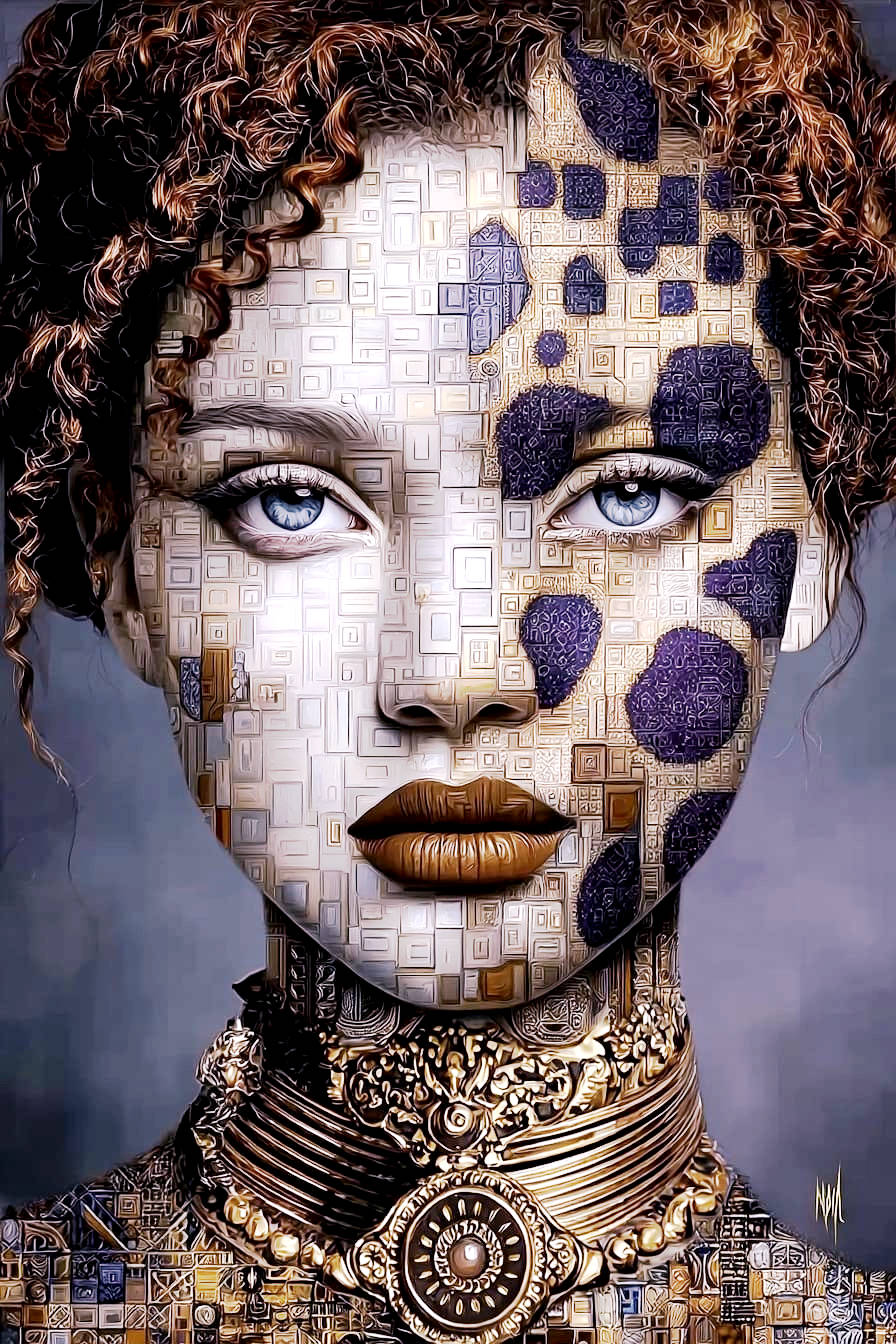 "Divine Blackness" is a tribute to the sacred resilience, aesthetic strength, and symbolic royalty of Black women, reimagined through a futuristic digital lens. These portraits blend hyperrealism, spiritual symbolism, and Afro-diasporic elegance — transforming each subject into an icon of dignity and transcendence. The eyes are direct, the postures sovereign, the compositions rich with textured light and cultural codes. This collection doesn’t just portray beauty — it reclaims space, radiates ancestral power, and declares that Black femininity is not an accessory, but a monumental legacy. Each artwork stands as a digital relic — a moment of silent revolution preserved in pixels. This is not a trend. This is visual sovereignty.