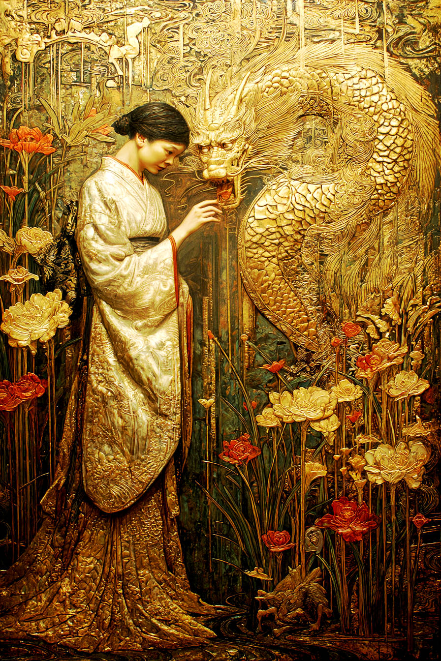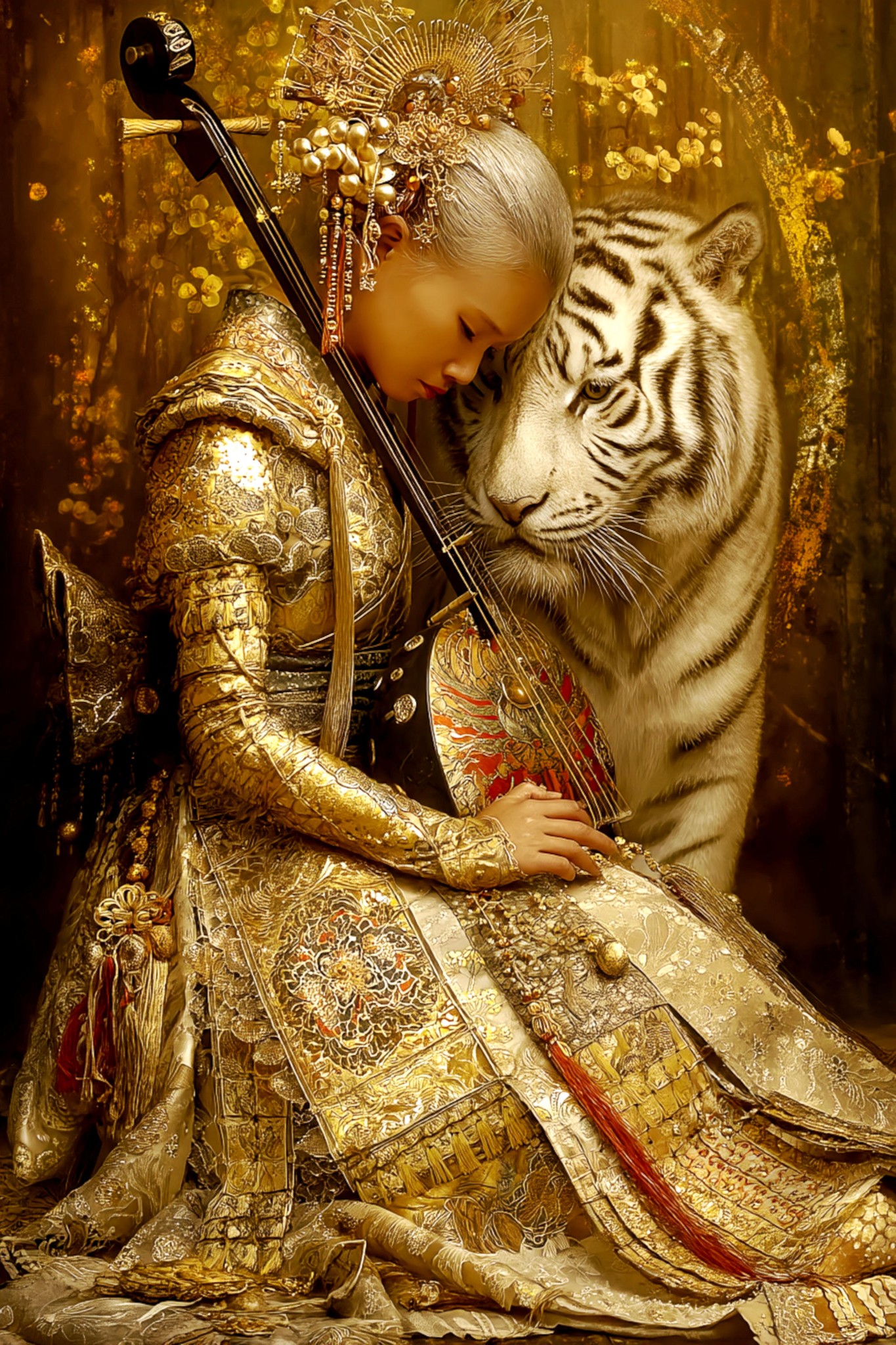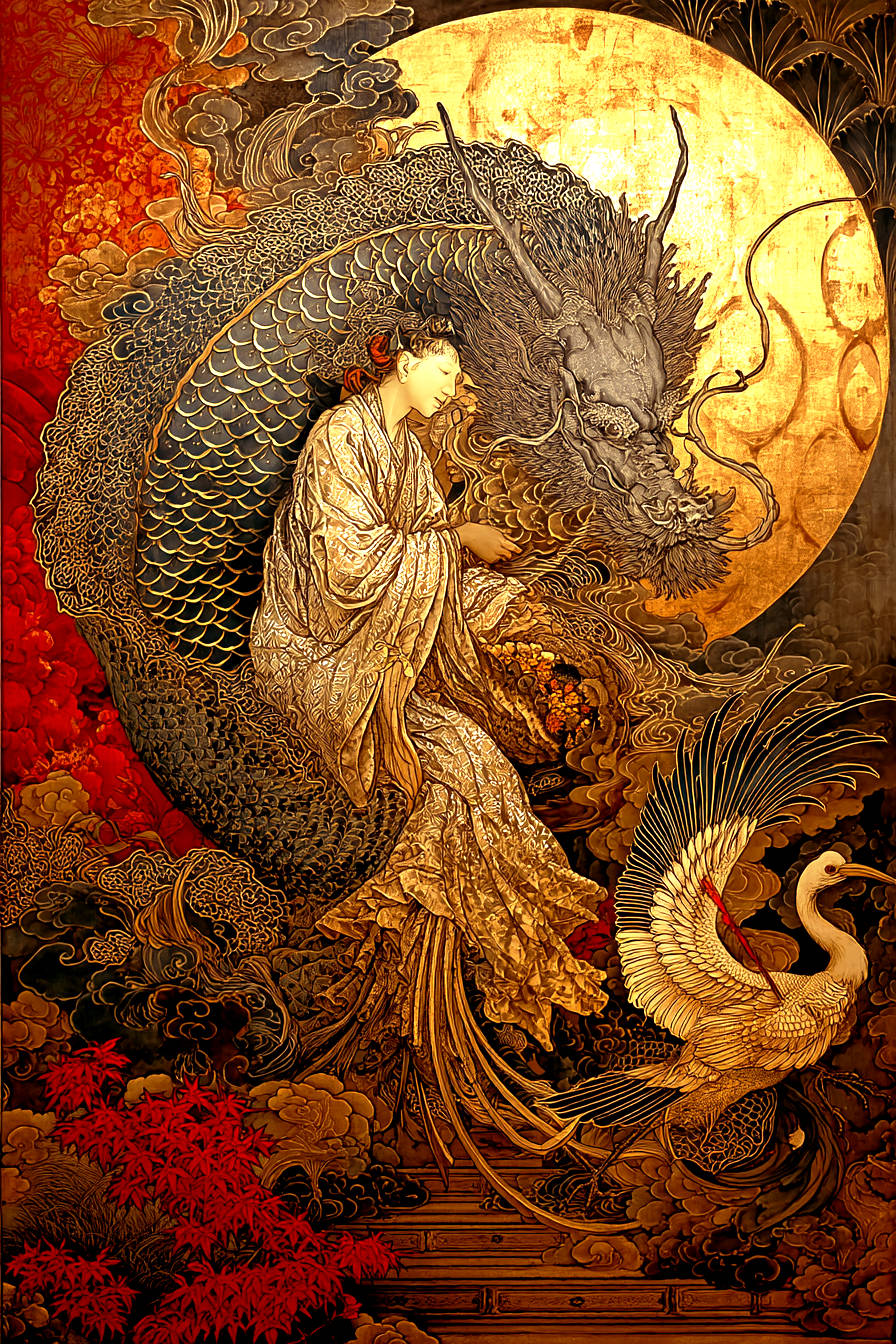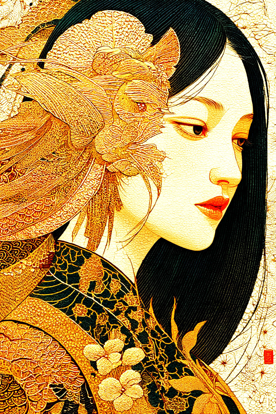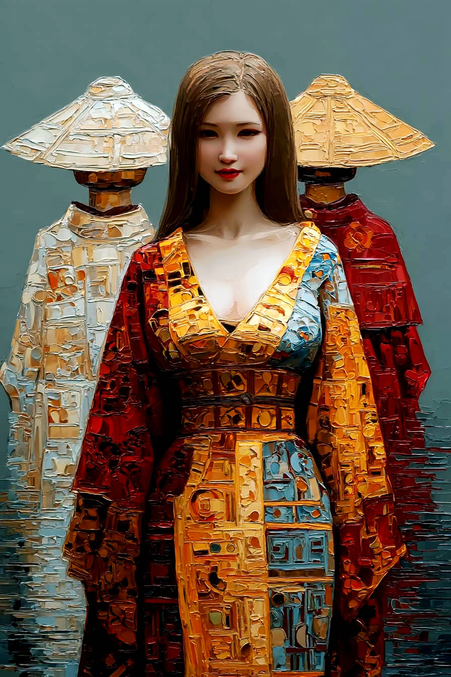 The Japanese Code: Golden Heirs of Elegance is a curated digital collection celebrating the mystical aesthetics of Japan through a fusion of tradition and futuristic symbolism. Each piece echoes the sacred legacy of kimono guardians, dragon priestesses, and silent samurai—reborn in digital gold. Every figure is adorned in embroidered textures, sacred inks, and ceremonial poses, embodying the lost elegance of an empire reborn through code and art. These women and warriors are more than muses; they are encrypted relics—custodians of vanished rituals, now revived in shimmering layers of data and color. Rendered in high-resolution digital brushwork with influences from Edo, Meiji, and contemporary post-human design, the series evokes both reverence and rarity. This is not simply a collection; it is a visual ritual. A digital shrine to elegance, identity, and encoded memory.